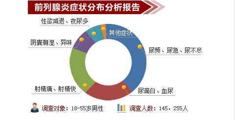 性功能障碍:前列腺炎可引起性欲减退和射精痛,射精过早症,并影响精液质量,在排尿后或大便时还可以出现尿道口流白,合并精囊炎时可出现血精。前列腺炎如不及时治疗,则会导致患者出现早泄、阳痿等症状,甚至引起患者不育。